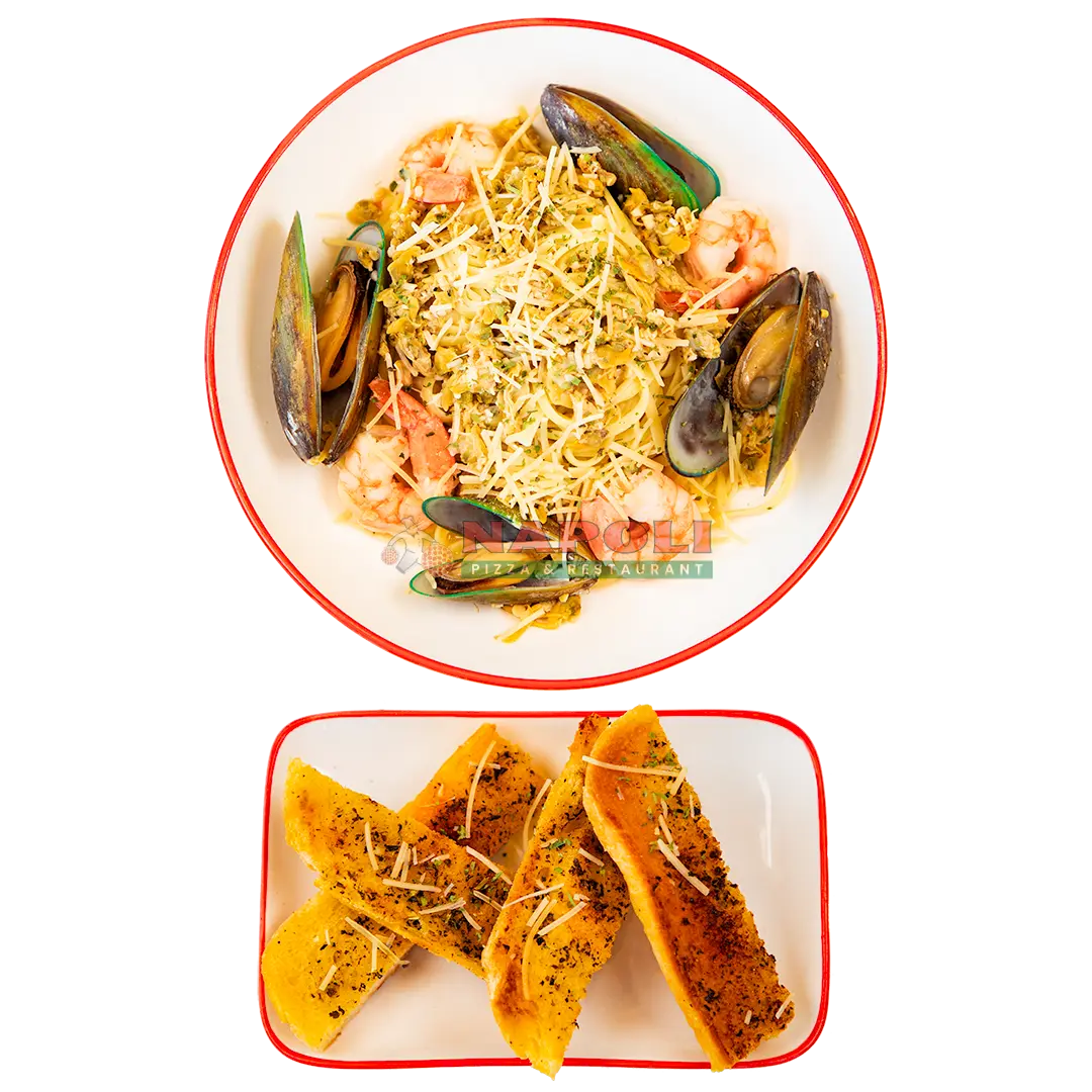 Seafood Linguini + Garlic Bread