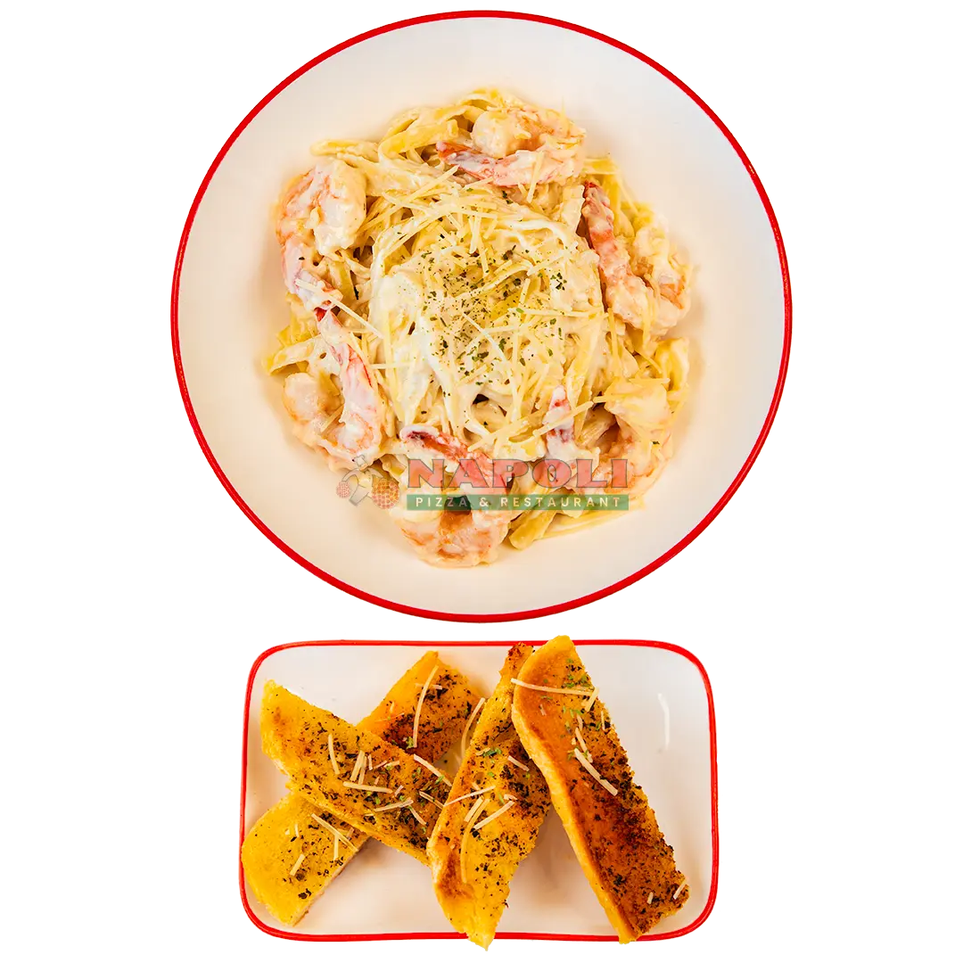 Shrimp Fettucini Alfredo + Garlic Bread