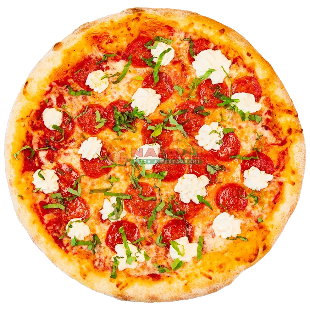 Pepperoni, Ricotta Cheese, Drizzled With Hot Honey & Topped With Fresh Basil