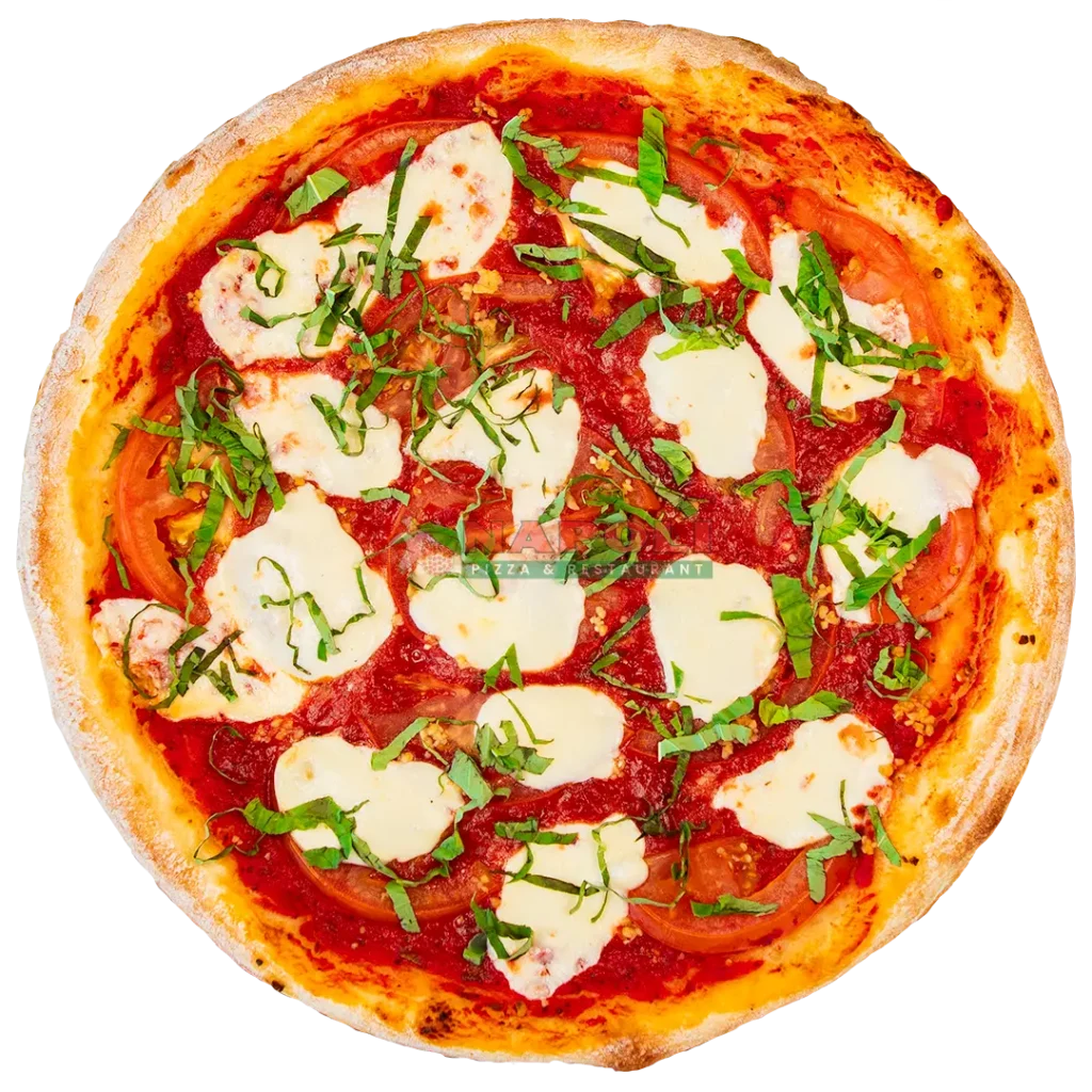 Sweet Tomato Sauce, Fresh Mozzarella Cheese, Tomato, Fresh Garlic & Fresh Basil